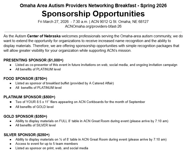 Omaha Area Autism Providers Breakfast (March 27, 2026)